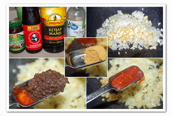- Add shrimp paste, ginger, Sambal Oelek. Stir and cook for another minute.