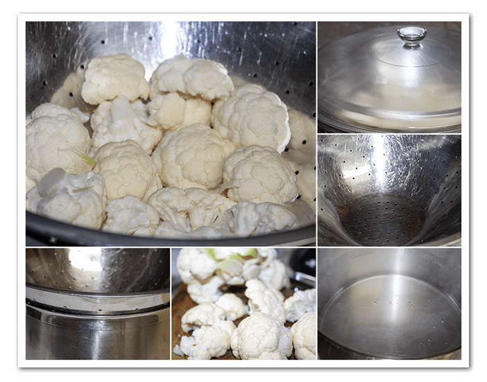 - Preheat oven to 350F. Since I don’t have a steamer I improvised. Next time I am just going to boil the cauliflower, imo it doesn’t make a lot of difference. in this case I steamed the cauliflower for about 10 min.