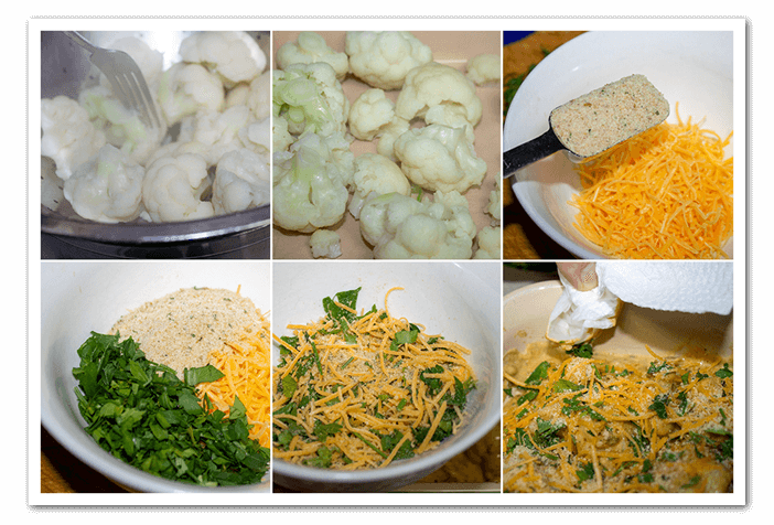 - Put the cauliflower in a baking dish. Pour the onion cheese mixture over the cauliflower. Add the remaining cheddar cheese in a bowl and add the breadcrumbs and chopped parsley. Sprinkle over the cauliflower. Wipe the sides down. Bake for 8 min till the sauce is bubbly. Put the oven on broil, broil for 4 min, the top should be slightly brown.