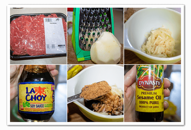 - 1 lb thinly slice rib eye steak or already sliced steak for bulgog