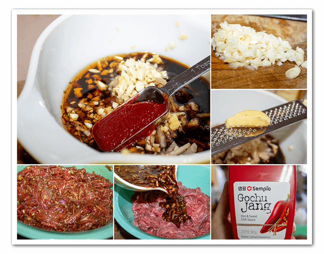 - While the meat is marinating make the Bibimbap sauce. Combine all ingredients for the bibimbap sauce.