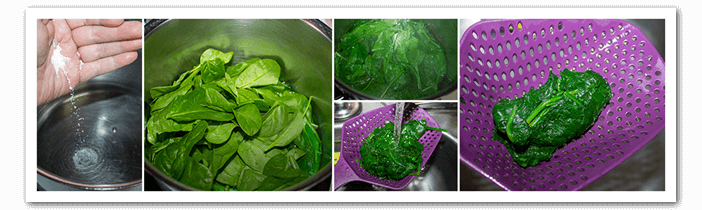 - Par boil the spinach and squeeze the juice out.