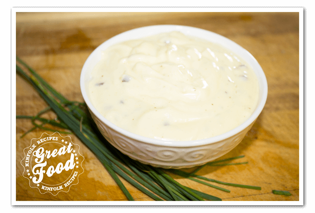 • Slowly pull the stick blender up, and voila you made yourself some home made mayo. Optional is to add ea. chives, garlic etc.