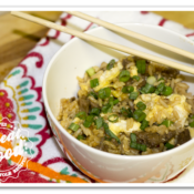 Crack your eggs and whip them with a fork. Add 1 tbsp olive oil to your wok/skillet the add the whipped eggs. Take the scrambled eggs out of the wok. Add another tbsp of olive oil then add 1 tsp of crushed garlic then add the marinated meat. This just takes about 4 minutes. Add the cooked rice, stir well. Then add the scrambled eggs and the chopped green onions.