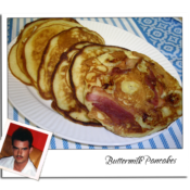 Here is a simple and easy to reproduce buttermilk pancake of my friend Tanis. The secret to great pancakes is not to over mix the batter and to let it stand for about 5 to 10 minutes before cooking. This is an excellent Buttermilk Pancake all on its own but it is great base for all types of pancakes like Blueberries, Bananas, Apples, Strawberry and Nuts, or what ever you like be creative. This recipe uses powdered Saco buttermilk, you could use regular buttermilk but you would halve to adjust the batter texture for the liquid buttermilk. I like using the powdered Saco buttermilk for two reasons, 1. It incorporates easily into the dry ingredients for an evenly buttermilk taste and 2. I do not use buttermilk that much in my cooking and the powdered Saco buttermilk keeps for a long time in the fridge so I only use what I need with out wasting the rest. You can find Saco buttermilk at your local grocery store.