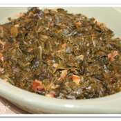 You can tell when the collards are done by the color of the vegetables (see pic) this took about 1 hour. If you like you can mix the greens up like adding turnip greens and or kale.