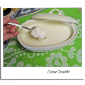 Creme fraiche (French for "fresh cream") is a heavy cream slightly soured with bacterial culture, but not as sour or as thick as sour cream. Originally a French product, today it is available throughout Europe and the rest of the world. Can be made by adding a small amount of buttermilk or sour cream to normal heavy cream, and allowing to stand for several hours at room temperature until the bacterial cultures act on the cream.