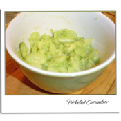 Peel and slice the cucumber, Sprinkle 1/2 tbsp salt on the cucumber and let it sit for a about an hour. Then squeeze the liquid out. Add 1 tbsp sugar, 1 tsp mustard, 1 tbsp vinegar and a dash of pepper.