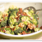Add the bacon and the walnuts to the broccoli. Add the salad dressing.