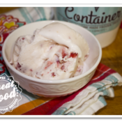 Turn your kitchenaid machine on and pour the strawberry mixture into the ice maker. This takes about 15-20 minutes. When the kitchen aid machine starts making a clicking sound the ice cream is done. Put into a container and freeze.