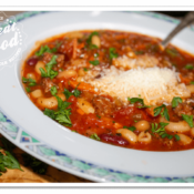 The Italian term “pasta e fagoili” translates in English to pasta and beans. It’s a hearty soup consisting of plenty of the two. This is as close I could get to the one they serve in Olive Garden.