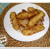 Cut the bananas in 4 and put in the batter. Fry in the hot canola oil. Untill nice and brown, sprinkle with brown sugar.