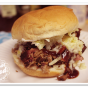Pulled pork is the traditional pork barbecue of North Carolina. It is arguably the oldest type of American barbecue. In Eastern North Carolina, this barbecue is traditionally made from a whole hog. In the central to western parts of the state, pork shoulder (Boston butt) is typically used. The pork is slow-smoked over hickory for twelve to sixteen hours. Because of the slow cooking, the meat becomes very tender and can be torn into shreds by fingers alone. The meat may also be served chopped rather than pulled. This is especially true in Lexington-style barbecue. Wood smoke and long cooking times are required to make authentic barbecue. Pork braised in sauce in a crock-pot or other such device is not considered true barbecue. Pulled pork is usually served with a thin, piquant vinegar-based barbecue sauce in Eastern North Carolina or a tomato-and-vinegar based sauce in Central and Western NC, and eaten on a bun as a sandwich, or on its own with side items such as coleslaw (mayonnaise-based in Eastern North Carolina, vinegar-based in central and western NC), baked beans, hush puppies, collard greens, or cornbread. Pulled pork may be prepared from a fresh pork shoulder by slow roasting (6 to 8 hours at 250F-300F for an 8- to 12-lb cut)