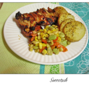 Cut up the bacon, bell pepper, red pepper , green onion and onion. Put in a skillet 2 tbsp olive oil, add the bellpepper and onions. Cook for about 5 min,. then add the bacon cook another 5 min. Add corn to the pan and yes cook another 5 min, (Now if you use fresh corn and lima beans. you need to cook them separate for about 10 minutes or until tender) Add the lima beans and cook another 5 min. Stir in the thyme pepper and salt according to your taste. Add the cream or chicken broth and cook for another 5 min.